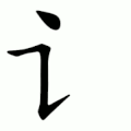 Древняя идеограмма схожа с рисунком «язык», черточкой указывается на то, что произносится.