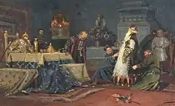 Образ первого царя как убийцы-параноика был намечен Толстым ещё в 1840-е гг. в балладах «Василий Шибанов» и «Князь Михайло Репнин»; окончательно он был очерчен в стихотворении 1858 года «Старицкий воевода».