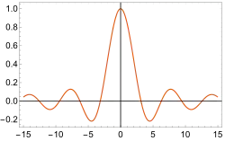 В этом случае интенсивность на экране имеет вид косинуса, но амплитуда его уменьшается по закону sinc в зависимости от протяженности источника.