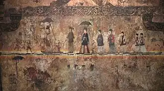 Знать и богачи носили широкие шапки не сужавшиеся кверху, без полей, из тёмно-красного шёлка сорта ло (罗) и украшенные золотом и серебром, большие и длинные халаты с широкими рукавами и широкие штаны с белым кожаным поясом. Обувь шилась из жёлтой кожи. Женщины надевали нижнюю рубаху, юбку и сверху длинное платье.