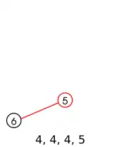 Вершина 4 теперь стала концевой и имеет наименьший номер, поэтому она удаляется, а 5 добавляется в код.