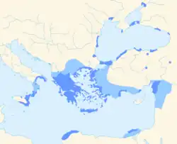 - Светло-голубой: области, которые были эллинизированы.