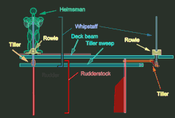 Колдершток представляет собой рычаг, расположенный вертикально, и соединённый с концом румпеля. Длинный конец рычага держал в руках рулевой, короткая часть рычага крепится к румпелю[2]. Наклон колдерштока приводит к повороту руля[1].