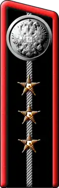 Петлицы или погоны чиновника имели три звёздочки диаметром 11,2 мм на одном просвете, там же крепилась эмблемка (арматура) служебного ведомства.