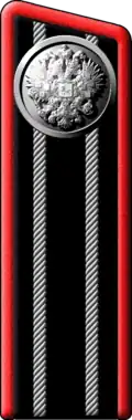 Знаком различия служила галунная петлица с двумя параллельными просветами без звёзд, и эмблемой служебного ведомства по её центру.