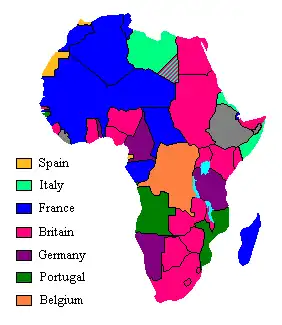 Берлинская конференция 1884 года, которая регулировала европейскую колонизацию и торговлю в Африке, обычно упоминается как отправная точка «битвы за Африку»[2]. Политическое и экономическое соперничество между европейскими империями при разделе Африки в последней четверти XIX века позволяло европейцам избежать прямых войн между собой из-за неё[3][уточнить]. В последующие годы XIX века произошел переход от «неформального империализма» с помощью военного влияния и экономического господства к прямому правлению, что привело к колониальному империализму[4].