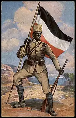 В Германском Камеруне ещё перед началом войны немецкие войска были ослаблены серией восстаний. Кроме того, географическое положение Камеруна позволило союзникам начать наступление со всех четырёх сторон одновременно. 8 тысячам немецких солдат и вспомогательных местных войск противостояли около 30 тысяч солдат и офицеров союзников (в основном — английских и французских войск). Несмотря на это, до сентября 1914 года немецким войскам удавалось сдерживать наступление. 27 сентября 1914 года союзникам удалось захватить порт Дуала, а немецкие войска были вынуждены отступить вглубь континента и перейти к партизанской тактике. В течение следующего года бои проходили с переменным успехом, однако в сентябре 1915 года союзникам удалось занять ключевые точки страны. В январе 1916 года после отступления из столицы Яунде большая часть немецких войск (900 немцев и около 12 тысяч местных войск) перешли в нейтральную Испанскую Гвинею. За ними последовали около 50 000 мирных жителей. Оставшиеся войска сдерживали наступление до тех пор, пока последний солдат не покинул территорию Камеруна, после чего 18 февраля 1916 года сложили оружие[30].