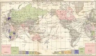 При кайзере Вильгельме II Германия пыталась увеличить сферу своего колониального влияния путём увеличения количества торговых представительств. В этот период наращивался военный потенциал (особенно военно-морских сил) — согласно канцлеру фон Бюлову Германия готовилась «занять своё место под солнцем» несмотря на то, что «пришла слишком поздно». Среди прочего, под этим подразумевалось и обладание колониями. Подобная политика национального престижа резко контрастировала с прагматической колониальной политикой Бисмарка 1884—1885 годов[22].