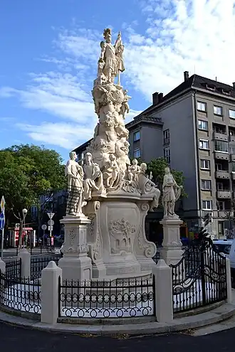 Первоначально статуя была установлена на рыночной площади возле бывших Лауринских ворот в центре Братиславы (сегодня это нижняя часть площади СНП на пересечении улиц Штуровой и Лауринской)[5]. Она простояла на этом месте почти двести лет. В район Блюменталь памятник был перенесен в 1938 году во время перестройки Каменной площади и расширения прилегающей улицы Штуровой[2]. В результате переноса монумента его именем была названа и площадь, на которой была установлена статуя.