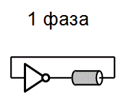 Ограничение тока через инвертор с помощью пары токовых зеркал (Фиг. 3) позволяет управлять задержкой распространения сигнала, и соответственно частотой кольцевого генератора. В таком виде кольцевой генератор может быть использован в качестве элемента ФАПЧ (PLL). Каждый из составляющих кольцевой генератор инверторов может быть дополнен RC-цепочкой. В этом случае (Фиг. 4) задержка на элемент будет в меньшей степени определяться самим инвертером, и в большей степени задержкой RC-цепи. Это позволяет получить генератор с частотой гораздо в меньшей степени зависящей от параметров транзисторов, напряжения питания и температуры. Простейший 3х-элементный кольцевой генератор (Фиг. 2) имеет на выходе 3 сигнала сдвинутых по фазе на 120 градусов. Используя 5, 7 и более каскадов можно получить произвольное количество фаз, однако стоит избегать числа каскадов не равного простому числу, например 9 или 15. Проблема состоит в том, что в генераторе состоящем из, например 9и элементов могут возникать как колебания с частотой 1/18Td, так и колебания с частотой 1/6Td. То есть по кольцу будут распространяться группы сигналов в виде трёх логических единиц, и трёх «нулей». Часто возникающая задача получения тактовых импульсов со сдвигом в 90 и 180 градусов может быть решена объединением трёхэлементных кольцевых генераторов в более сложную структуру (Фиг. 5). Такая схема генерирует две пары комплементарных сигналов сдвинутых на 90 градусов. Существуют структуры, состоящие из инверторов, для генерации восьми и более фаз. Иногда требуется получение нечётного количества фаз, но простая схема из, к примеру, 5и инверторов имеет суммарную задержку не позволяющую получить сигнал требуемой частоты. В этом случае возможно построение пяти-фазного кольцевого генератора из нескольких трёхэлементных (Фиг. 6).