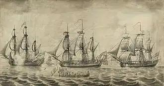 Корабли компании на рейде Гринвича. Гравюра Джона Худа (1769)
