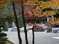 Храм состоит из большого числа павильонов и пагод, множества комнат и залов для медитации с уникальными картинами, сада камней, парка с прудом, библиотеки, мавзолея Дэнто Кокуси.