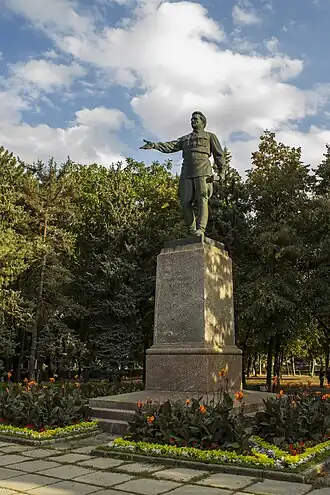 - Герой Гражданской войны А. Я. Пархоменко (мрамор — 1968, конный, 1969)[1]