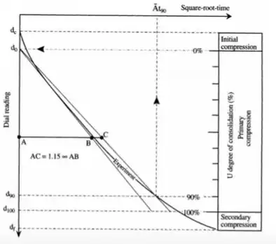 Этот метод предполагает, что консолидация происходит только в одном измерении по оси Z. Лабораторные данные используются для построения графика зависимости деформации или коэффициента пустотности от эффективного напряжения, где ось эффективного напряжения находится в логарифмической шкале . Наклон графика — это индекс сжатия или индекс рекомпресии.