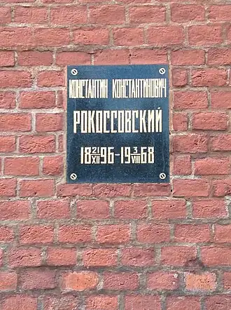 - ↑ Мемориал у Кремлёвсклй стены — Константин Константинович Рокоссовский Архивная копия от 27 марта 2009 на Wayback Machine. (недоступная ссылка с 25-05-2013 [4412 дней] — история, копия)