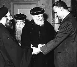 В 1952 году Гамаль Абдель Насер возглавил несколько армейских офицеров в государственном перевороте против короля Фарука, ликвидировав таким образом Королевство Египет и основав республику. Основной политикой Насера был панарабизм и социализм. Копты были серьезно затронуты политикой панарабизма Насера, хотя они представляли приблизительно 10-20 % населения[54]. Кроме того, панарабская политика Насера подорвала сильную привязанность коптов к своей египетской доарабской и неарабской идентичности, конечно же это привело к тому, что разрешения на строительство новых церквей откладывались, а христианские религиозные суды были закрыты[54].