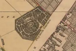 Изображение сада на карте Эдинбурга с «Ботанической усадьбой» у дороги в Лит, 1804г.