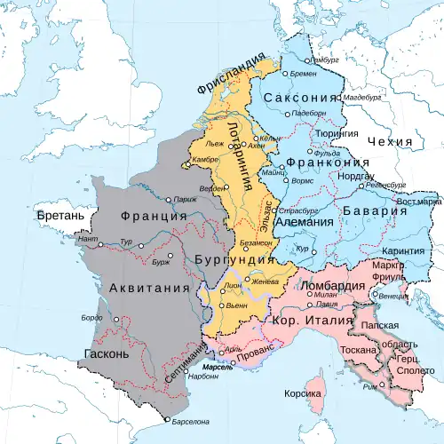 Каролингская империя после раздела королевства Карла Прованского 863 года