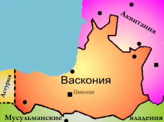 В начале VIII века северная часть Наварры вместе с Памплоной входила в состав государства, созданного из Аквитании и Васконии Эдом Великим, неизвестно насколько велика была власть Эда в этом регионе, однако о крупных восстаниях против правителей Васконии этого времени в источниках не сообщается. В VIII веке большая часть Наварры, включая Памплону, была завоёвана маврами, однако горная часть области осталась непокорённой и вела постоянную борьбу с мусульманами и франками.