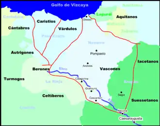 Древнейшими известными жителями Наварры были васконы, предки басков. Наварра, как и вся территория Испании, последовательно покорялась римлянами, свевами, вестготами (в VI веке). В 507 году король франков Хлодвиг разбил вестготского короля Алариха II в битве при Пуатье и присоединил Аквитанию и Новемпопулану к Франкскому королевству. Воинственные и свободолюбивые васконы, укрепившиеся в Пиренеях, с конца VI века представляли угрозу для франкского королевства, периодически восставая против власти франков[2]. И вестготы, и франки пытались подчинить их, чтобы контролировать стратегически важные проходы через западные Пиренеи, но все попытки окончились неудачей.