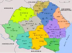 С 1938 по 1940 год королевство делилось на цинуты Арджеш, Кришурь, Дунэрий, Жиу, Мэрий, Муреш, Нистру, Прут, Сучава, Тимиш.