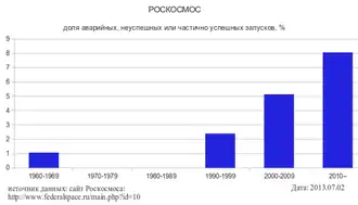 - ↑ Михаил Бондарь. «Красные» против «Синих» - статистка космических запусков России (СССР) и США. BNC.ucoz.net (13 апреля 2013). Дата обращения: 3 октября 2019. Архивировано 14 марта 2019 года.