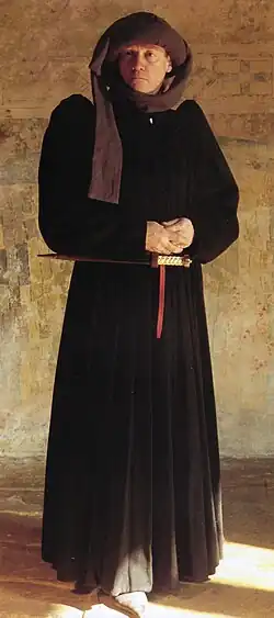 Чёрный полагался цветом умеренности, скромности, христианского смирения, а порой и покаяния перед Богом; с другой стороны его же ассоциировали со смертью, трауром и отчаянием. В начале XIV века чёрный стал настолько популярен, что на короткое время едва ли не вытеснил остальные цвета и оттенки; эту новую моду ввёл герцог Бургундский Филипп Добрый, в течение многих лет одевавшийся в чёрное в знак траура по отцу, убитому в обычной для тех времён феодальной войне за власть[19].
