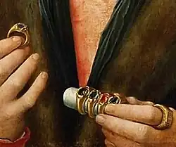 Фрагмент полиптиха Пьеро делла Франческа «Милосердная Богородица», ок. 1460![Мученичество святого Лаврентия, картина т.н. Алкмарского мастера[англ.], ок. 1465 г.](./The_Martyrdom_of_Saint_Lawrence%253B_(reverse)_Giving_Drink_to_the_Thirsty_MET_DT8702.jpg)