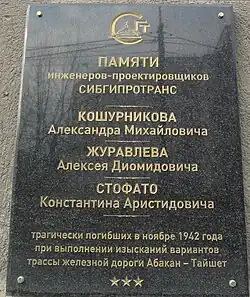 В дни пуска в постоянную эксплуатацию железной дороги Абакан — Тайшет изыскатели-первопроходцы 12 апреля 1966 года посмертно были награждены правительственными наградами: Кошурников А. М. — орденом Ленина, Журавлёв А. Д. и Стофато К. А. — орденами Трудового Красного Знамени.