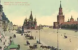 Кра́сная пло́щадь — главная площадь Москвы и России, расположена между Московским Кремлём (к западу) и Китай-городом (на восток). Выходит к берегу Москвы-реки через пологий Васильевский спуск. Площадь тянется вдоль северо-восточной стены Кремля, от Кремлёвского проезда и проезда Воскресенские Ворота до Васильевского спуска, выходящего к Кремлёвской набережной. На восток от Красной площади отходят Никольская улица, Ильинка и Варварка. Вдоль западной стороны площади расположен Московский Кремль, вдоль восточной — Верхние торговые ряды и Средние торговые ряды. Входит в единый ансамбль с Московским Кремлём, однако исторически является частью Китай-города[1][2][3][4][5][6].