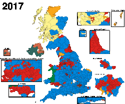 На всеобщих выборах 2017 года консерваторы потеряли места в целом, но получили шесть мест, удерживаемых лейбористами в Мидлендсе и на Севере, которые последняя партия занимала не менее трех десятилетий: Северо-восточный Дербишир,[8] Уолсолл Норт,[9] Мэнсфилд,[10] Сток-он-Трент Саус,[11] Миддлсбро Саус энд Ист Кливленд и Коупленд (полученный на перевыборах 2017 года). На выборах 2019 года консерваторы увеличили свое большинство в ранее полученных округах.