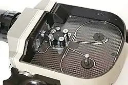 Зеркальный двухлопастный обтюратор нижнего расположения с постоянным эквивалентным углом раскрытия 150° (2×75°) обеспечивал сквозное визирование и наводку на резкость вручную по фокусировочному экрану (матовому стеклу) или по шкале дистанций съёмочного объектива[4]. Также в видоискателе отображалась стрелка встроенного полуавтоматического экспонометрического устройства TTL, позволявшего корректировать экспозиционные параметры непосредственно во время съёмки, и обеспечивать точность экспозиции, достаточную даже для цветной обращаемой киноплёнки, особенно чувствительной к ошибкам.