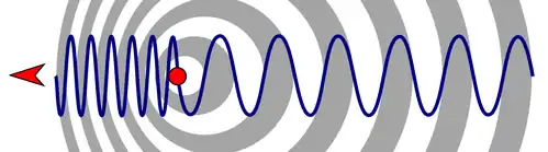 Первой открытой причиной красного смещения был эффект Доплера, предсказанный теоретически Кристианом Доплером в 1842 году, однако в то время не существовало приборов, способных проверить его на практике[30][31]. В 1868 году Уильям Хаггинс впервые использовал эффект Доплера на практике: наблюдая красное смещение линий в спектре Сириуса, он доказал, что эта звезда удаляется от Солнца[32].