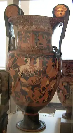 - ↑ Hurschmann: Apulische Vasen, в: DNP 1 (1996), колонка 923