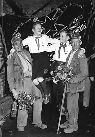 В 1935 году Кривой Рог стал центром стахановского движения. Видными стахановцами Криворожья были Тынок Н. К., Лаштоба Ф. И., Митрофанов И. А.