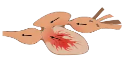Систему кровообращения примитивных рыб можно условно представить в виде последовательно расположенного «четырёхкамерного» сердца, совершенно не похожего на четырёхкамерное сердце птиц и млекопитающих: