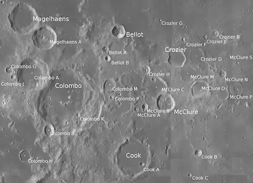 • Сателлитный кратер Крозье H является концентрическим кратером.