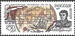 - ↑ Первое русское кругосветное плавание — И. Ф. Крузенштерн. ПАРУСА НА МАРКАХ. Парусные корабли на знаках почтовой оплаты (1 апреля 2017). Дата обращения: 26 апреля 2019. Архивировано 26 апреля 2019 года.