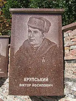 - Также в городе Кременчуге на Аллее Героев, на граните высечено фото и имя Виктора Крупского.