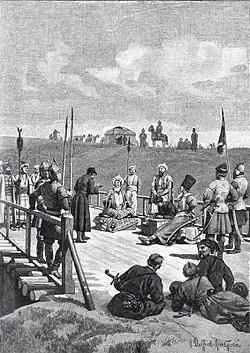 Переговоры с ханским послом 1593 на картине русского художника Николая Дмитриевича Дмитриев-Оренбургского, XIX век