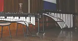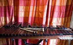 Ксилофо́н (от греч. ξύλον — дерево + φωνή — звук) — ударный музыкальный инструмент с фиксированной высотой звучания. Представляет собой ряд деревянных брусков разной величины, настроенных на определённые ноты. По брускам ударяют палочками с шарообразными наконечниками (маллетами) или специальными молоточками, похожими на небольшие ложки. Диапазон современного ксилофона составляет 312 октавы, от фа малой октавы до ноты до 4-й октавы. При игре на ксилофоне очень важен материал головок палочек, которыми извлекают звук из инструмента. Так, например, палочки с резиновыми головками будут издавать тихий и мягкий звук, в то время как палочки с пластиковыми головками будут давать резкое и очень громкое звучание.