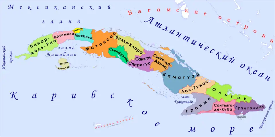Куба является унитарным государством. Национальная территория в политико-административных целях до 2011 года делилась на 15 провинций и специальную муниципию остров Хувентуд, провинции делились на муниципии. 1 января 2011 вступило в силу решение о разделении провинции Гавана на провинции Артемиса и Маябеке, вследствие чего количество провинций увеличилось до 16. Провинции, в свою очередь, делятся на 169 муниципалитетов.