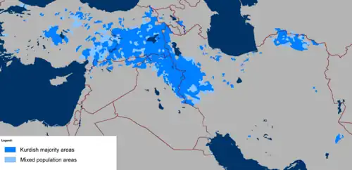 Ку́рды (курд. کورد, Kurd) — иранский народ в Западной Азии[19], проживающий в этнографической и исторической области Курдистан[20][21], которая ныне находится в составе четырёх государств: Турции (Северный Курдистан), Ирана (Восточный Курдистан), Ирака (Южный Курдистан) и Сирии (Западный Курдистан). Значительное число курдов живёт также в Германии, Франции, Израиле, Ливане и во многих других странах. По исследованию Парижского института 2016 года, численность курдов составляет 45,6 млн человек[22].