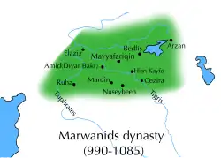 С VIII по XIX века существовало большое количество разрозненных курдский династий, вождеств, эмиратов и княжеств[96]. В 990 году династия Марванидов взяло контроль над значительными территориями нынешней Турции и Ираком. По свидетельству Ибн Хальдуна, основатель династии Бад аль-Курди в начале своей деятельности был всего лишь предводителем разбойничьей шайки, промышлявшей грабежом в провинции Мосул. Затем стал совершать набеги на Амед, захватив несколько крепостей на границе Курдистана и Армении. Вскоре Бад сплотил вокруг себя большое количество людей, вступил в Армению и захватил город Эрджиш. Он был союзником Буидов когда они завоевали Мосул (978 г.). Воспользовавшись ослаблением влияния Буидов после смерти эмира Азуд ад-Доуле (ум. 983), он захватил у мосульских Хамданидов Майяфарикин (ныне Сильван) и значительную часть Диярбакыра, в том числе Амед, Нусайбин и другие города северной части Месопотамии.