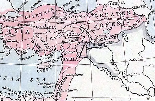 Одно из первых сохранившихся упоминаний о курдах датируется 520 г. до н. э. в трудах древнегреческого историка Гекатея Милетского, как о племени, именуемом «Cordī»[35]. Они основали царство Кордуена, которое было независимо с 189 года до н. э. Предполагается, что кордейцы, жившие недалеко от границ Ассирии и Мидии в современном Курдистане, говорили на древнеиранском языке. Царство было документировано как плодородный горный район, богатый пастбищами. Известно, что жители поклонялись хурритскому богу неба Тешуб. Племена кордейцев, также называемые кардухами, были известны как воинственные и неукротимые горцы, не подчиняющиеся персидскому царю и постоянно устраивающие набеги на соседей-армян. Согласно многим источникам, современные курды — потомки жителей Кордуены, а сама область является античным лексическим эквивалентом слова Курдистан (Кордэстан)[72][73]. Курды[57] служили Оронтидам, как наёмники на границах Армении[74]. В области Мардастан римский военачальник Корбулон, направляющийся из Арташата в Тигранакерт, подвергся нападению курдского племени мардов[75]. В 114 году во время военной кампании Траяна в Армении, римские войска были атакованы курдами, населявшими горные регионы на северо-востоке и востоке озера Ван[74]. В 224 году Ардашир Папакан предпринял походы против правителей прибрежных областей — Кермана и Мекрана. Согласно Карнамаку, Ардашир, бросив вызов курдам и собрав войско в 4 тыс. человек, сразился с Кермом и его хозяином Хафтобатом, на стороне которых выступали войска Синда, Мекрана и других прибрежных районов. Возможно, однако, что владетели некоторых провинций Кермана и Мекрана оказывали поддержку Ардаширу: о том, что их представители были в войске Сасанидов, говорится в третьей фразе VII главы Книги деяний[76]. После двухлетней войны (224 — 226 г. н. э.), которую вёл персидский король Ардашир Папакан против курдских племён в Шахрезуре, по соглашению двух сторон, курдский шах Каюс из Мидии был назначен царём для управления Кирманшахом, что положило началу династии Каюсидов и непосредственно Шахрезурскому царству[76].