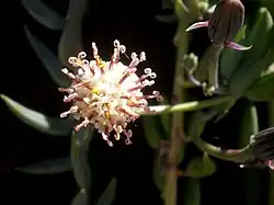 Скалы предоставляют идеальное убежище, защищая растения от крупных травоядных. Как и у многих суккулентов, ветви, отсекаемые и опускающиеся на уступы, могут самостоятельно укореняться при благоприятных условиях. Растение также изменяет форму и размер листьев в зависимости от условий обитания. В открытых зонах с ограниченным пространством для роста листья короткие и ладьевидные, а соцветия становятся более компактными. В тени или защищенных местах стебли и листья приобретают удлиненную форму. Прозрачные жилки на листьях способствуют проникновению света[5].