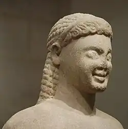 Куросы отличаются строгой фронтальностью композиции, суммарностью трактовки форм человеческого тела; лица их оживлены т. н. архаической улыбкой.