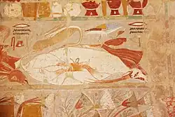 Бычья туша. Роспись гробницы Хатшепсут, XV век до н. э.