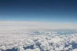 Нижняя граница кучевых облаков — плоская[1] и связана с точкой росы и давлением воздуха. Так как давление воздуха с увеличением высоты уменьшается, то выше нижней границы кучевых облаков (точки росы) вода находится в виде пара, а ниже нижней границы кучевых облаков (точки росы) конденсируется в жидкую фазу и выпадает в виде дождя.