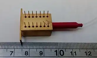 Самый распространнёный корпус для лазерных диодов с мощностями от 10 мВт до 800 мВт и более. Основное отличие-преимущество перед DIL-корпусом — более эффективный теплоотвод за счет увеличенной площади контакта элемента Пельтье с корпусом лазерного модуля — основной теплоотводящей поверхностью является нижняя. Для этого электрические выводы были перенесены на боковые грани, что усложняет организацию разъёмного соединения лазерного модуля с платой управления.